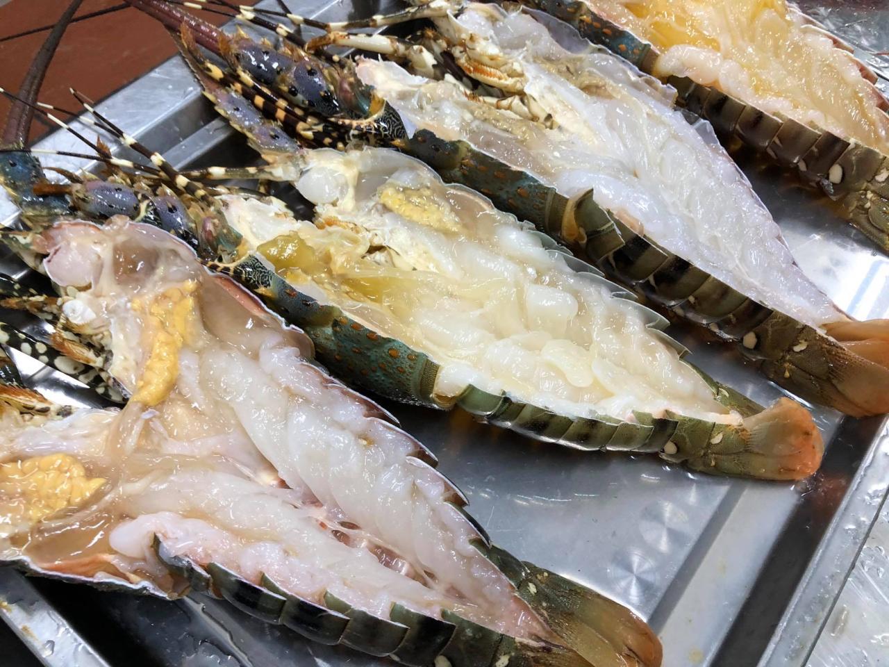Những con tôm hùm xanh tươi roi rói đang được chế biến tại Buffet Poseidon